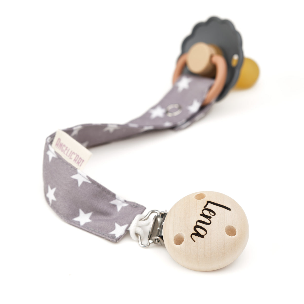 Unsere neuen Schnullerbänder Modelle werden mit viel Liebe zum Detail von uns persönlich angefertigt und für Sie mit ihrem Wunschnamen individuell graviert.